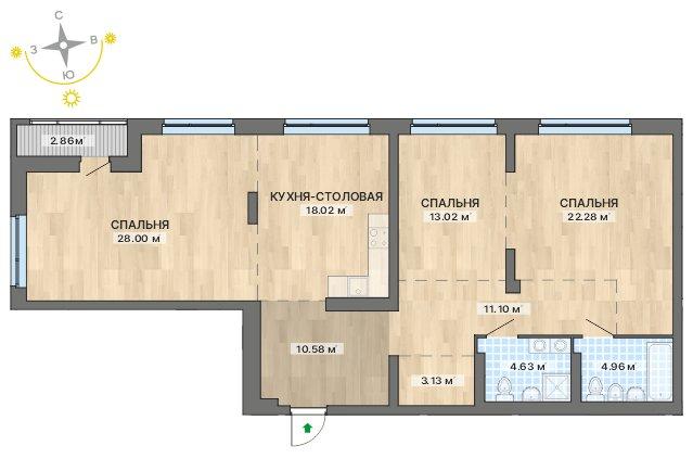 3-комнатная №5118,58 м²