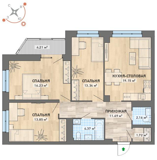 3-комнатная №12686,72 м²